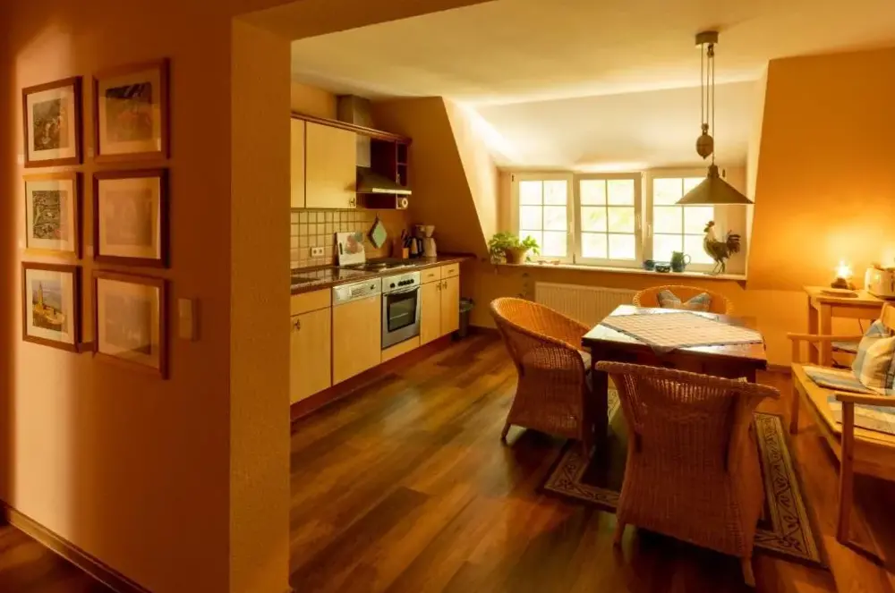 Es fehlte eine Mikrowelle und für mich die viele Treppen, weil ich eine Knie-OP hinter mir hatte.